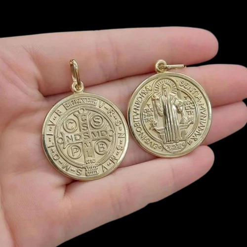 Descubra a beleza e a proteção que o Pingente São Bento Banhado a Ouro 18k pode trazer para o seu dia a dia. Esta peça não é apenas um acessório; é um símbolo de fé e proteção, elaborado com um acabamento de alta qualidade que reflete um brilho excepcional.